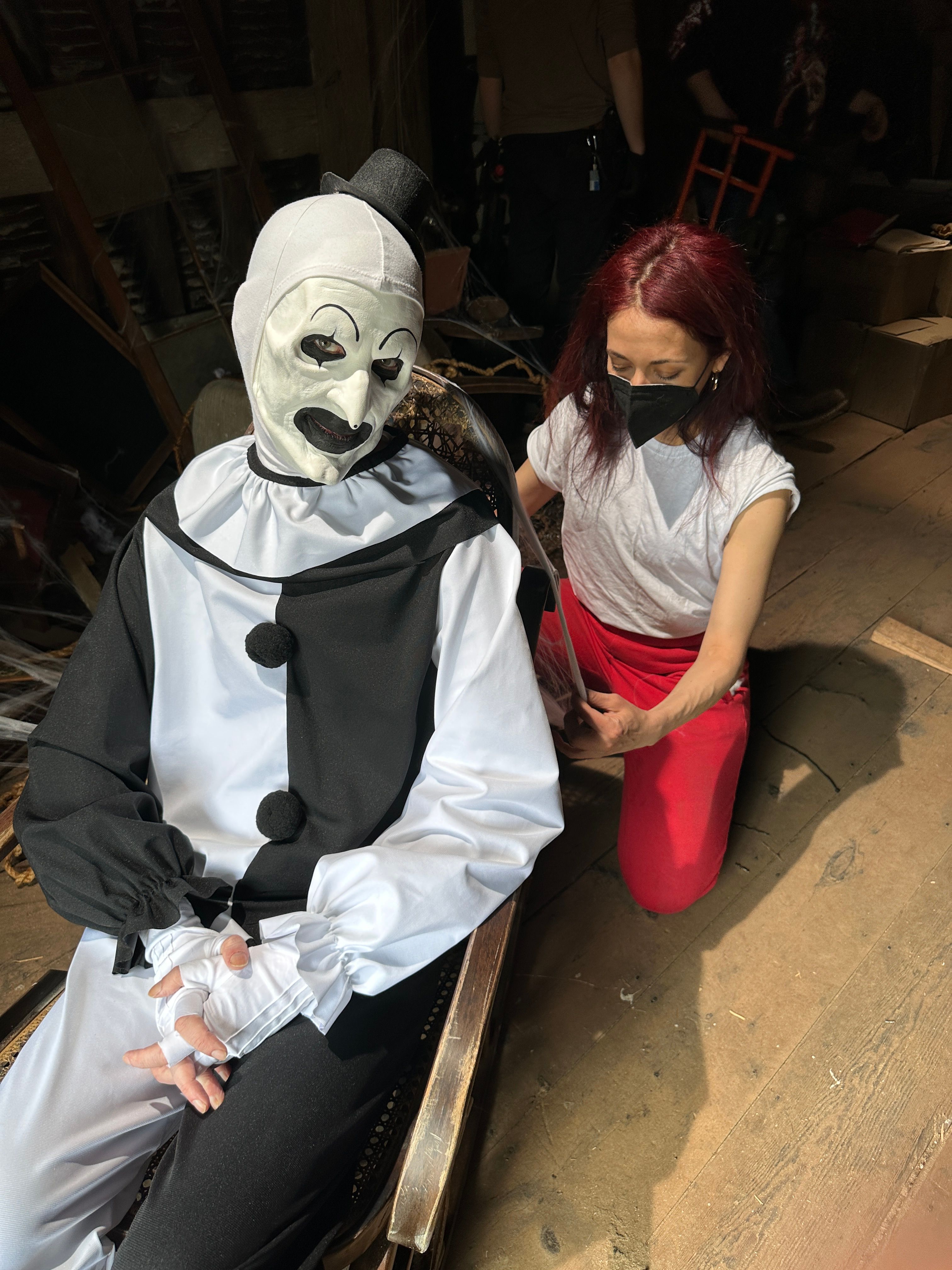 Olga> Actually, no! I turned the job down twice. I’d never heard of Terrifier before, so I watched the first one and was like, “Oh my God!” I was literally screaming, I had to shut the windows so my neighbours wouldn’t think something terrible was happening. Then I read the script for Terrifier 2, and what we were trying to accomplish on the budget we had seemed impossible. But after a lot of conversations, I signed on after the third time.